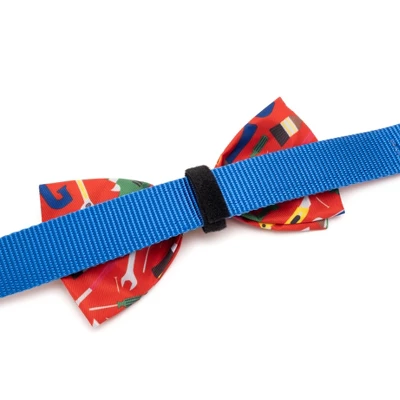 Bow ties for the dapper dog (or cat!) The perfect accessory for instant style, dress your pup up quickly and get ready for that photo! Easy to attach to or remove from almost any collar with a soft and secure double-sided touch fastener strip on back. Available in two sizes to fit most pets.